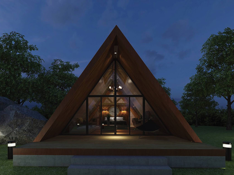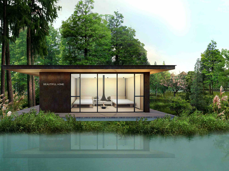 無論從顏色還是造型來說, 好的木屋民宿首先就是要和周邊環境融合在一起。 外墻板的...